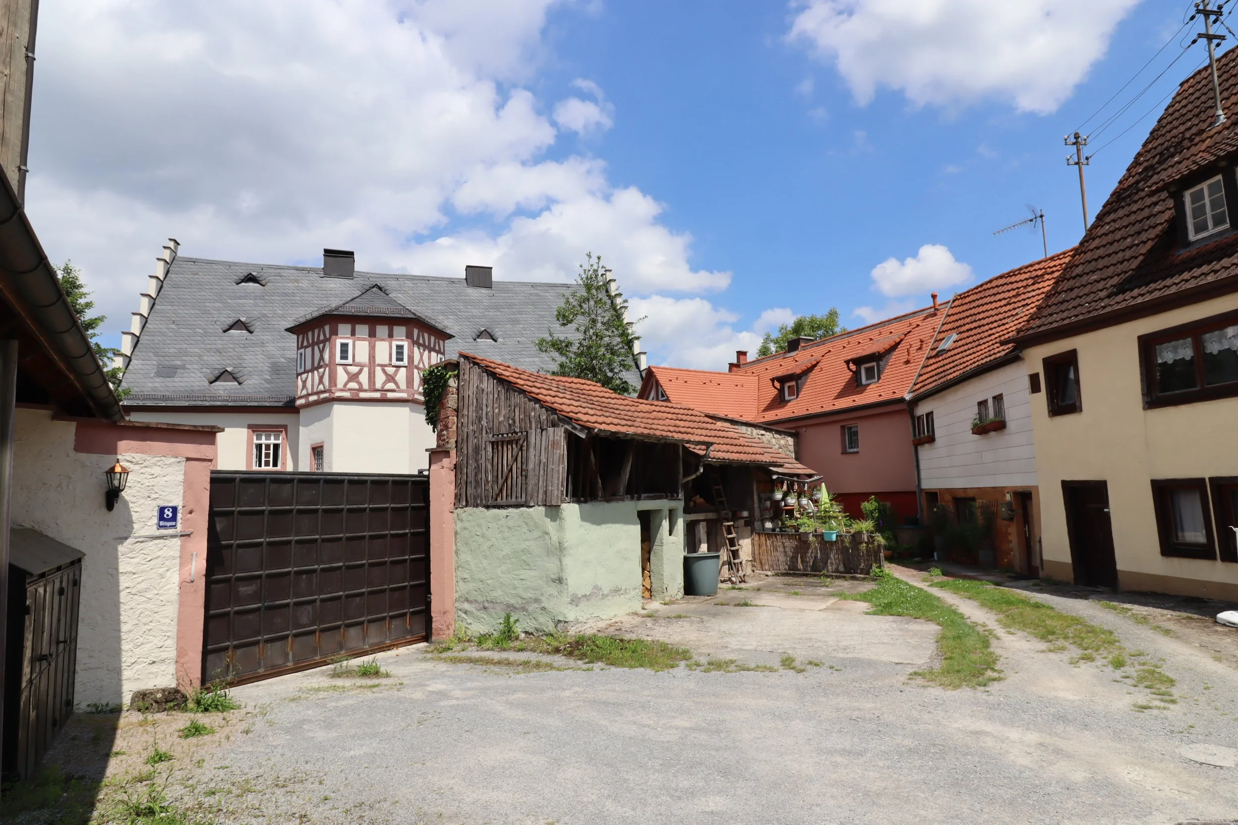 Zwischen dem Laudenbacher Schloss und der Hauptstraße liegt ein von drei Seiten umschlossener Hof. Er beherbergte früher die Ökonomiegebäude des Schlosses.
